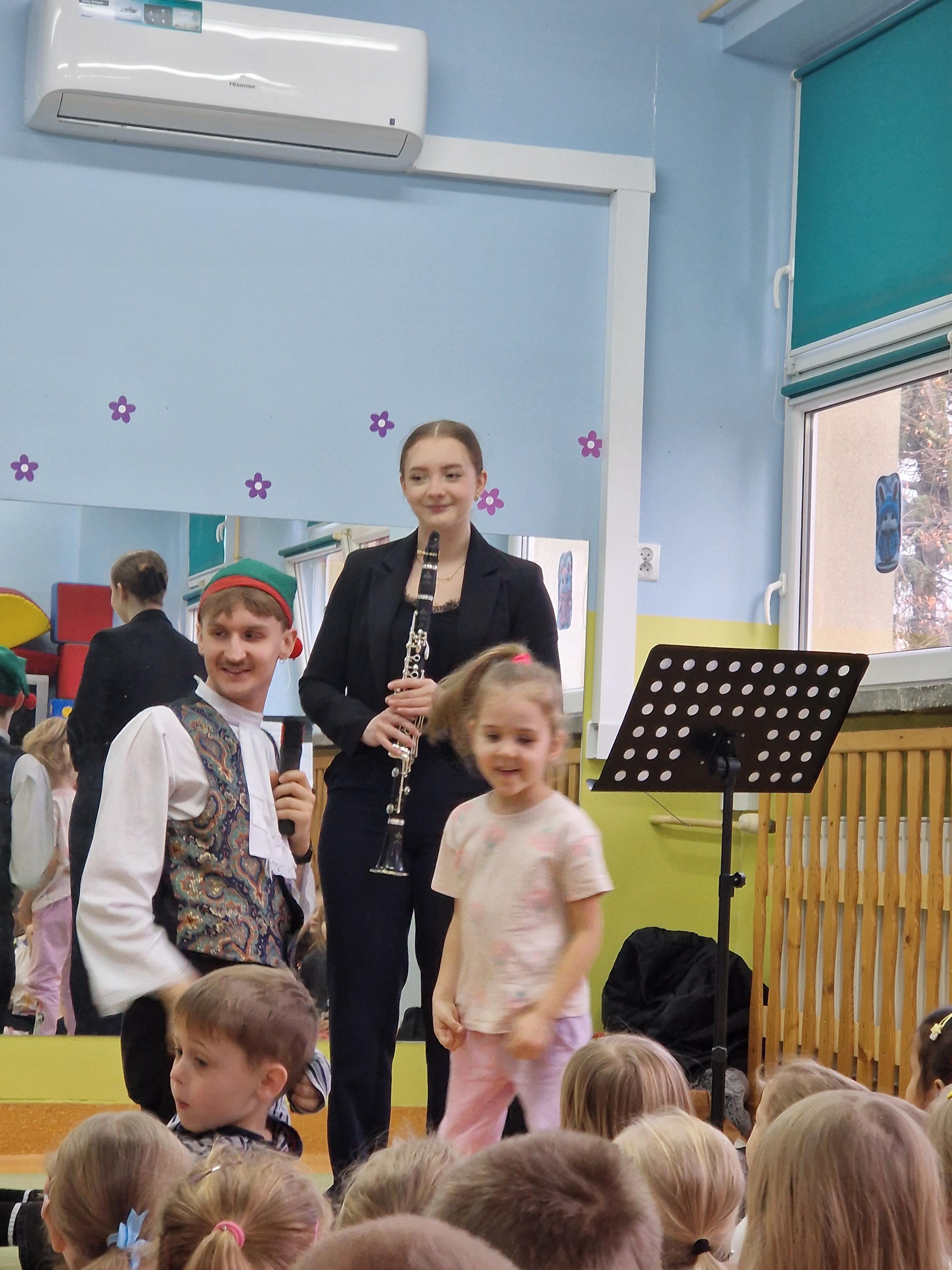 „Audycja muzyczna z Akademią Bachmana - Święta z klarnetem” to tytuł audycji edukacyjnej organizowanego przez grupę „Audycje Muzyczne z Bachmanem". Tym razem przedszkolaki poznały i bawiły się przy klarnecie.