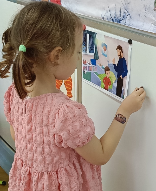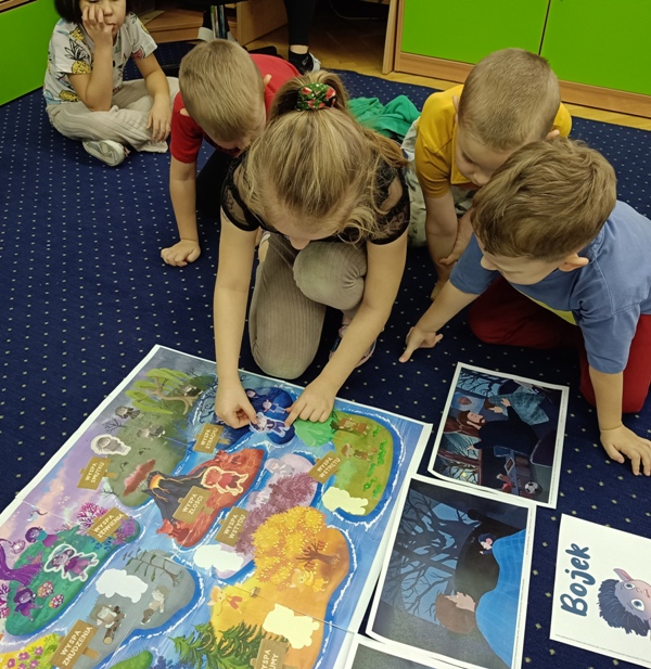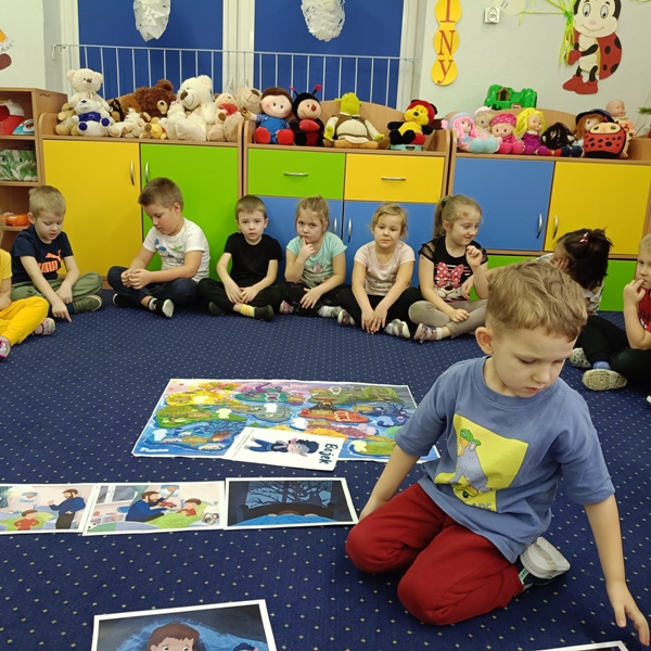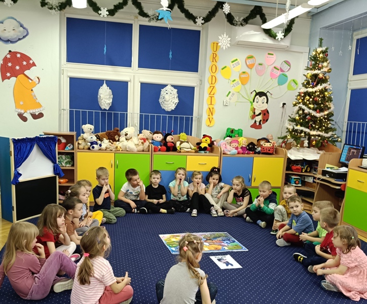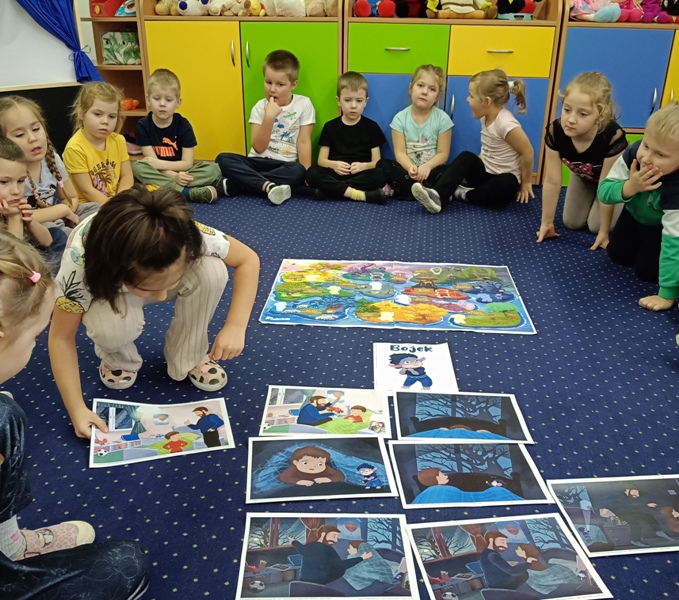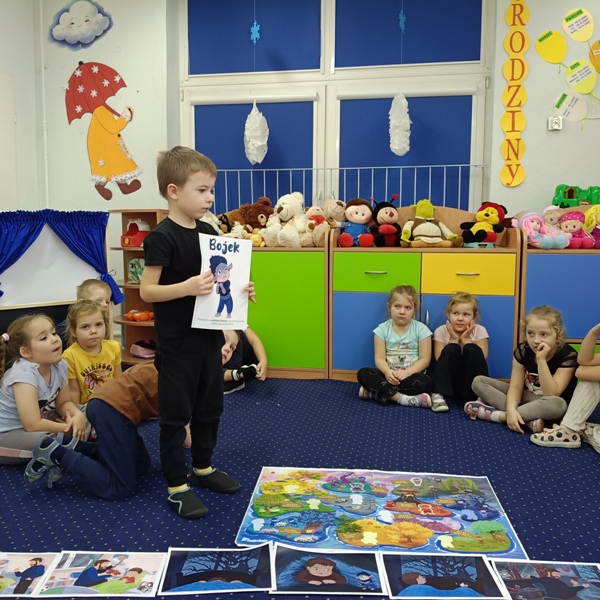 Podczas grudniowych zajęć przedszkolaki poznały kolejnego bohatera w ramach programu edukacyjnego „Czuciaki z Krainy Emocji”. Dzieci wysłuchały bajki „Bojek z Wyspy Strachu”, w której mały bohater pomaga chłopcu Jankowi oswoić nocne lęki. Po wysłuchaniu opowieści rozmawialiśmy o tym, czego boją się dzieci i jak można radzić sobie ze strachem. Przedszkolaki chętnie dzieliły się swoimi pomysłami i odkryły, że odwaga to nie brak strachu, ale umiejętność poradzenia sobie z nim — tak jak zrobił to Janek i Bojek.