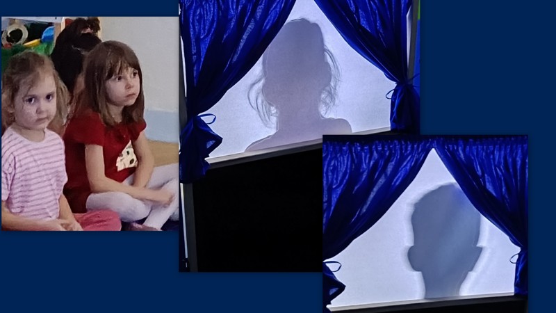 Część praktyczna zajęć obejmowała zabawę z lusterkami, zabawę „Wystraszony kotek” oraz teatr cieni w wykonaniu nauczycielki i chętnych dzieci.