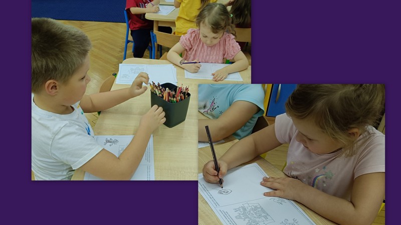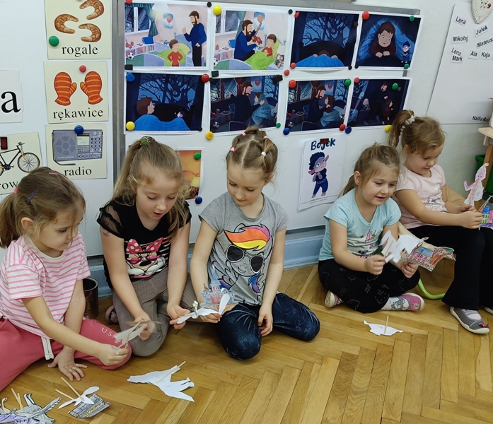 Na zakończenie dzieci mogły narysować swoje strachy i zamknąć je w zaczarowanej książeczce oraz pobawić się własnoręcznie wykonanymi postaciami, wyciętymi z papieru.