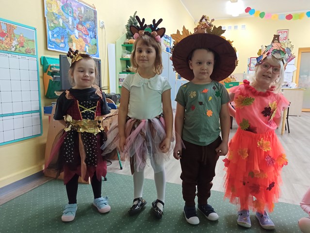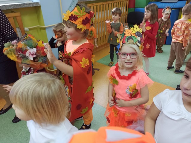 14 listopada 2025 roku "Bratki" bawiły się w przedszkolu na Balu Pani Jesieni. Dzieci przebrane w piękne stroje tańczyły w kółeczkach, wężykach, brały udział w konkursach. Uśmiech na twarzach towarzyszył dzieciom podczas całego balu.