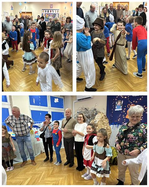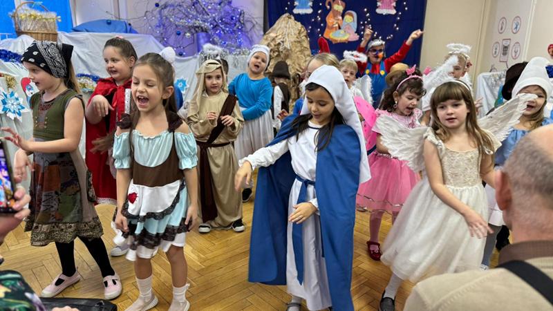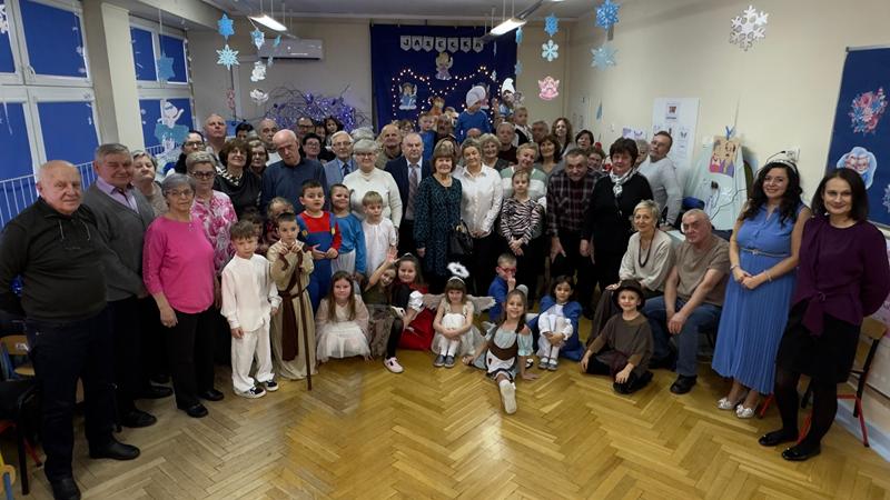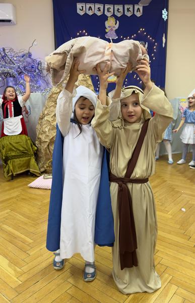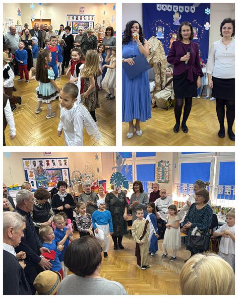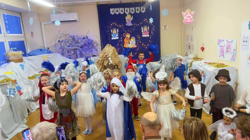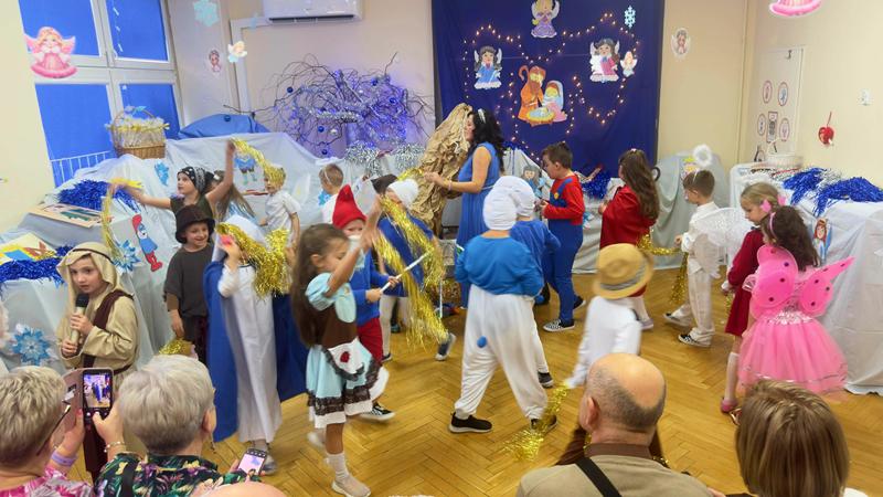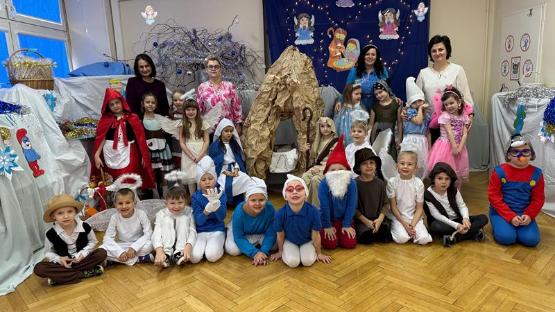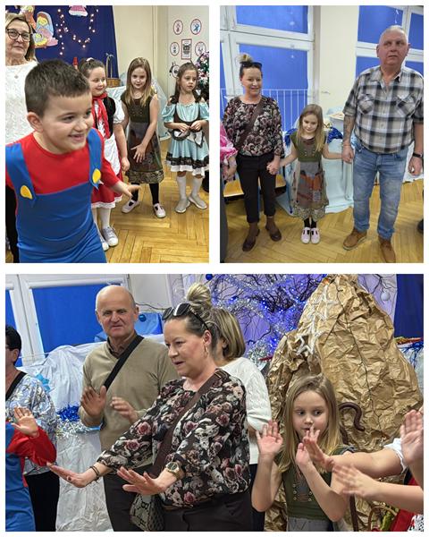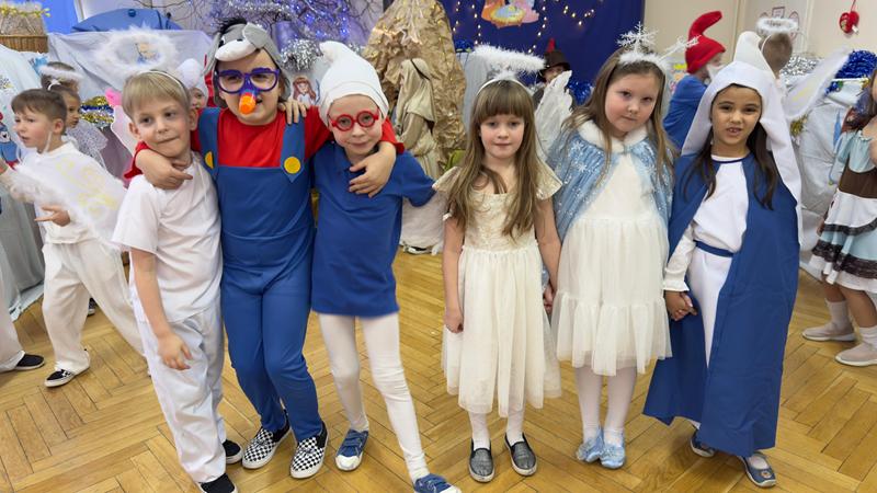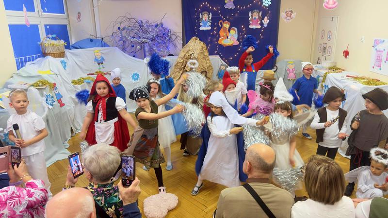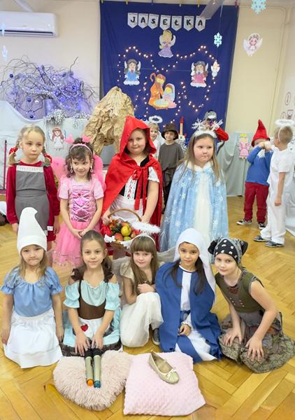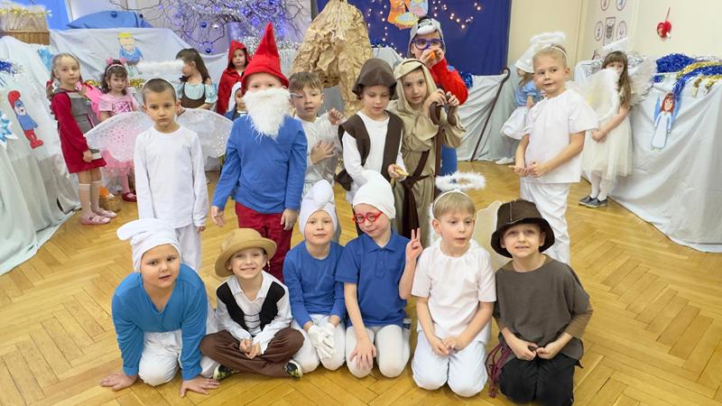 22.01.26 r. "Motylki" na "Betlejemską dobranockę" Drogie Babcie i Dziadziusiów zaprosiły i w postacie z bajek, które szły oddać pokłon Jezuskowi w żłóbku, się wcieliły. Były wspólne tańce, śpiewy, dzień pełen wzruszeń płynących prosto z małych serduszek.