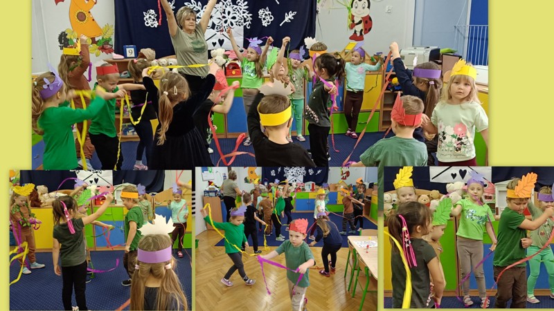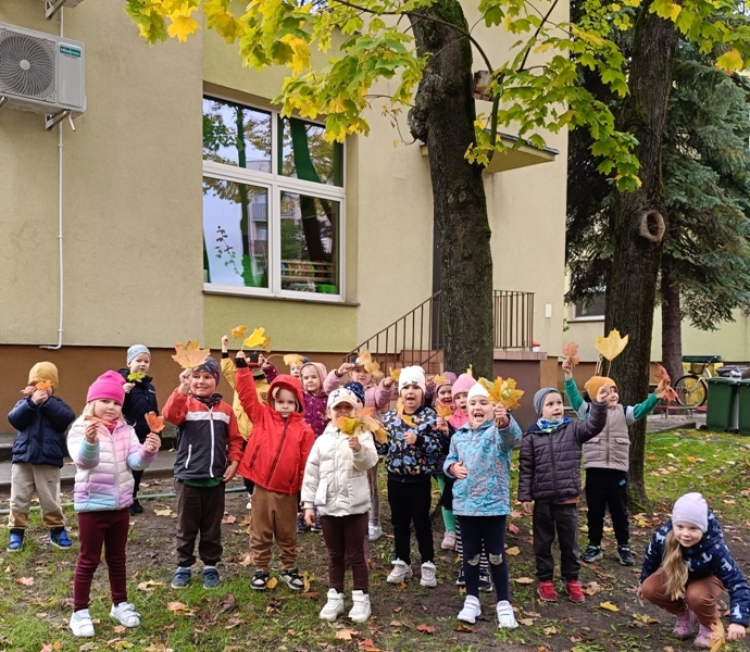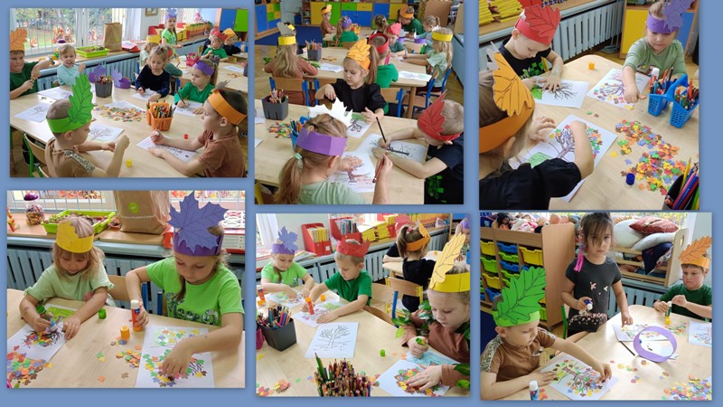 Wesoło bawiliśmy się biorąc w udział w wielu aktywnościach, których głównym motywem było drzewo. „Biedronki” wykonały również pracę plastyczną "Jesienne drzewko", przyklejając kolorowe listki, wg własnego pomysłu.
