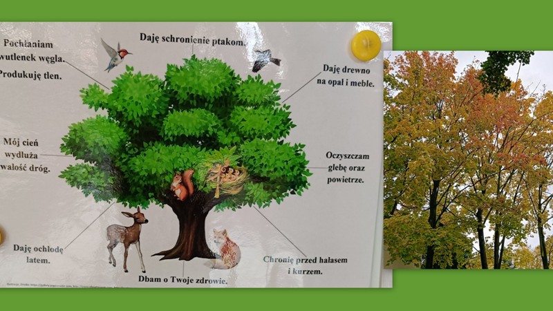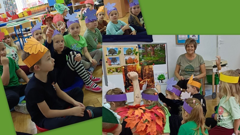 W piątek 10 października, obchodziliśmy wyjątkowe święto – Dzień Drzewa, który stał się wspaniałą okazją do poznawania przyrody i rozwijania kreatywności. Zajęcia rozpoczęliśmy od rozmowy kierowanej popartej pytaniami: Po co sadzimy drzewa? Jaka jest rola drzew? Następnie dzieci obejrzały film edukacyjny pt. „Drzewo, które umiało dawać". Przedszkolaki poznały budowę drzewa, jego znaczenie dla człowieka, zwierząt i przyrody. Dowiedziały się również, jak wielkie znaczenie mają drzewa dla czystości powietrza, a tym samym dla zdrowia człowieka.