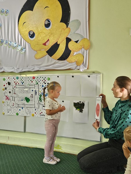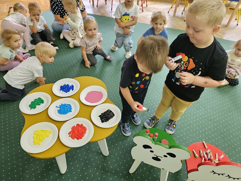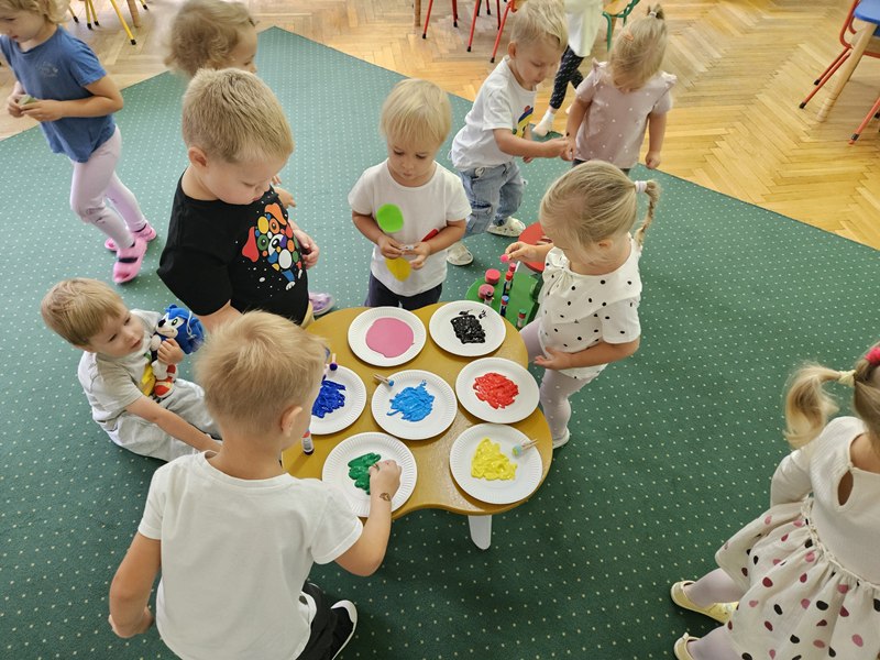 Tego dnia w naszej grupie królowały kolorowe kropki, które pojawiły się na ubraniach dzieci, w sali, na pracach plastycznych i w zabawach.