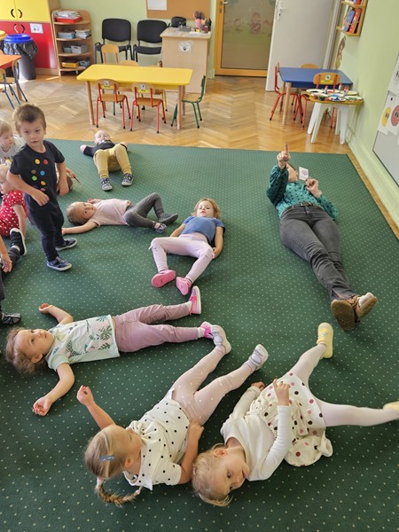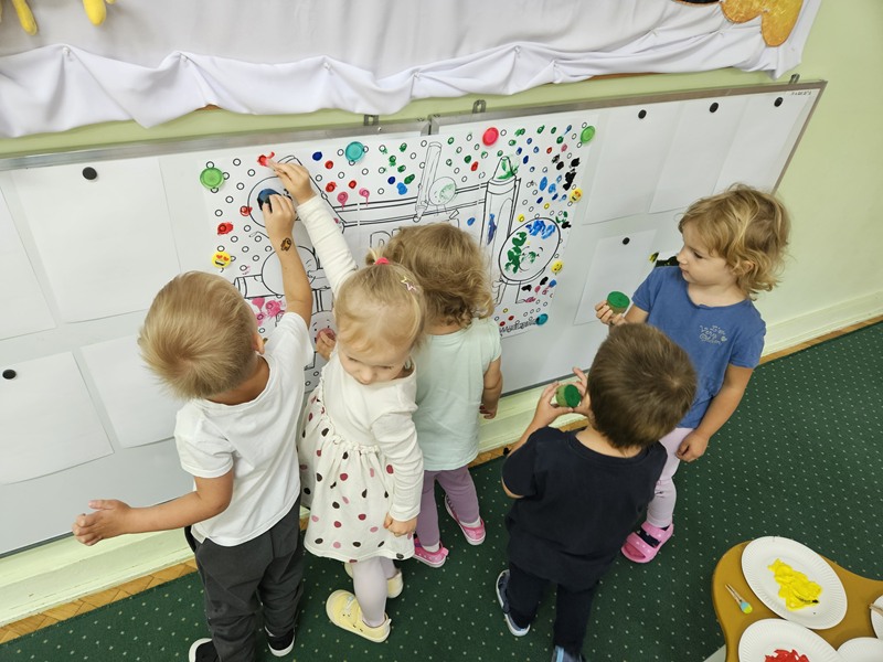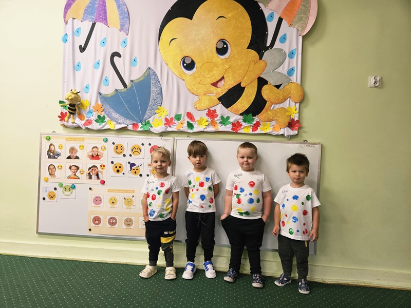 Dzieci tworzyły kropkowe koszulki, a także brały udział w różnorodnych zabawach ruchowych i muzycznych.