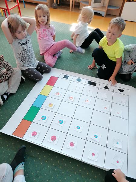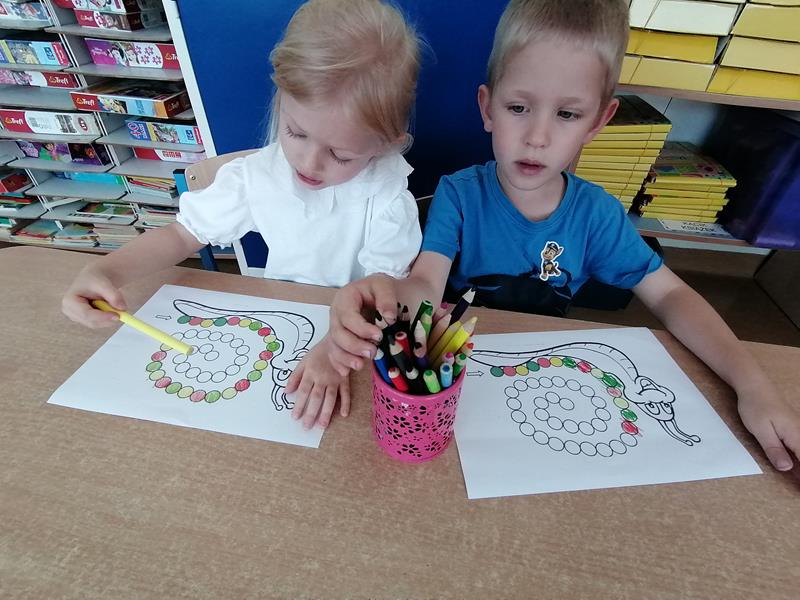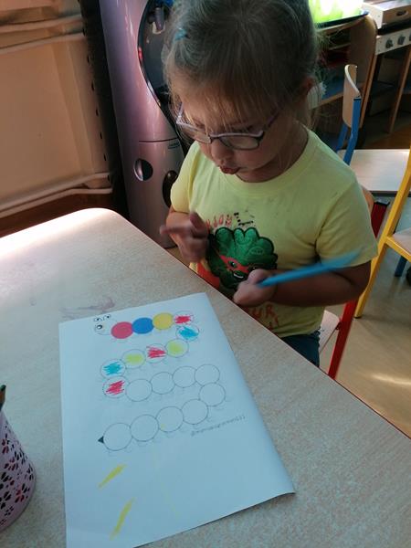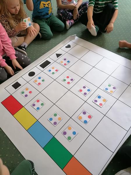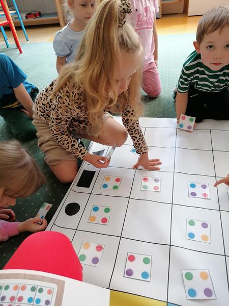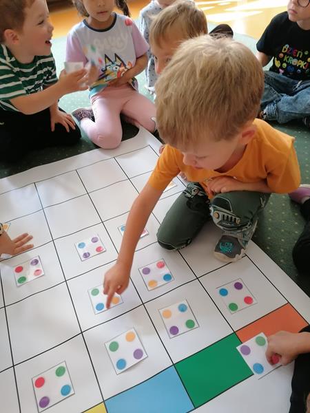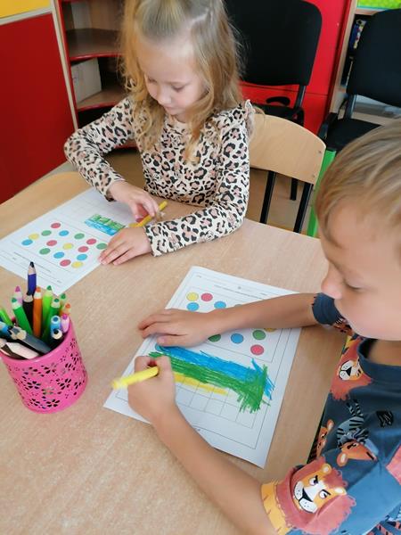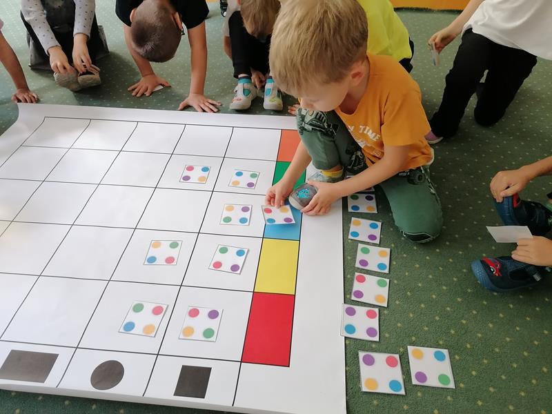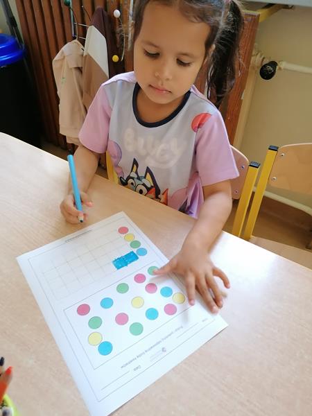 Zabawy z kropkami o różnych zdolnościach były również ok fryzury dla kropek, liczyły kropeczki, kolorowały zgodnie z podanym rytmem.azją do przygotowania do programowania. "Stokrotki " tworzyły kreatywne