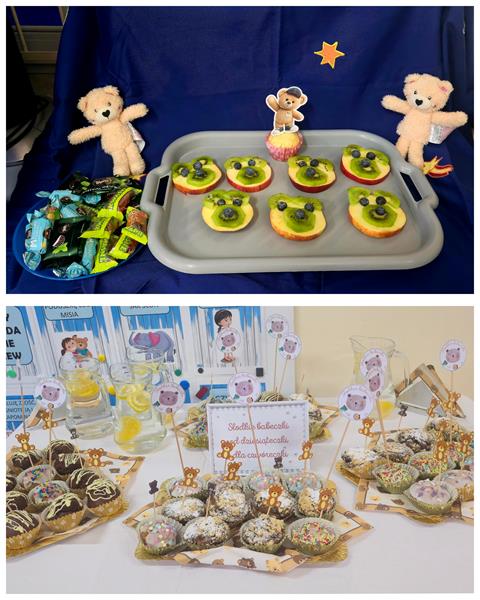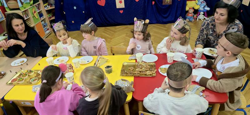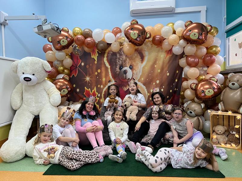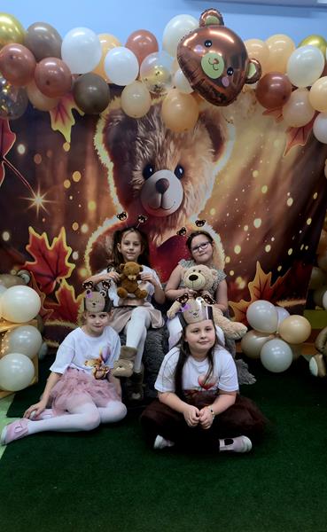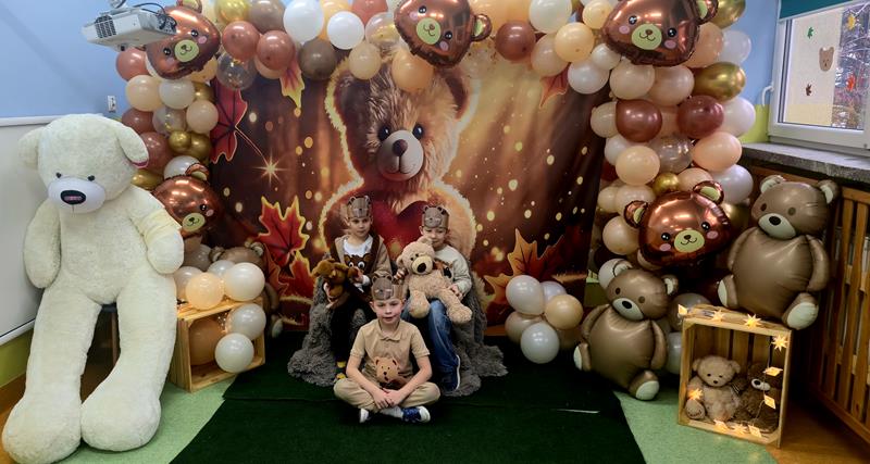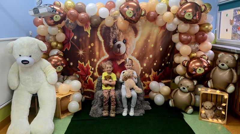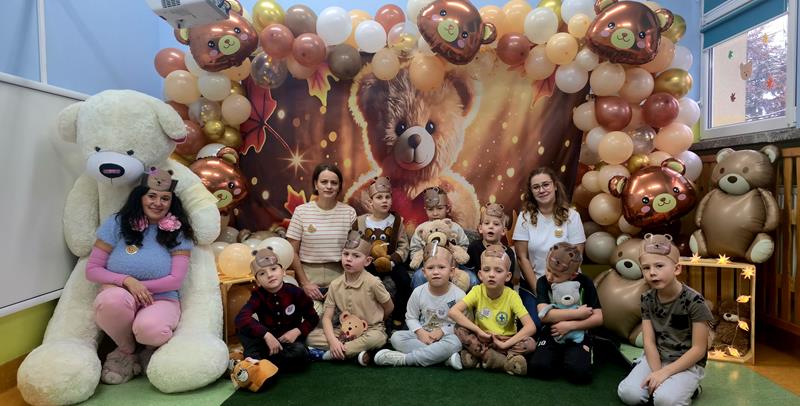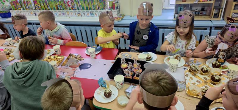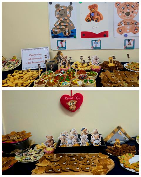 Dzień ten zwieńczył słodki poczęstunek, który na niejednej buźce wywołał uśmiech. "Motylki" wspólnie z rodzicami w domku słodkie, misiowe wypieki przygotowywały, zaś - "Sówki" babeczki nam ofiarowały. Po skończonej zaś uczcie - przedszkolaki "misiowe upominki" otrzymały i w sesji na "Misiowej fotościance" udział brały.