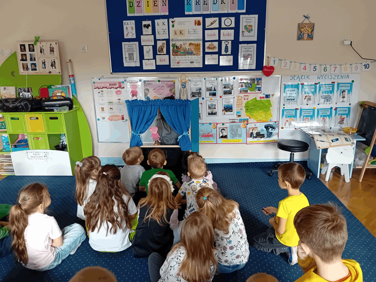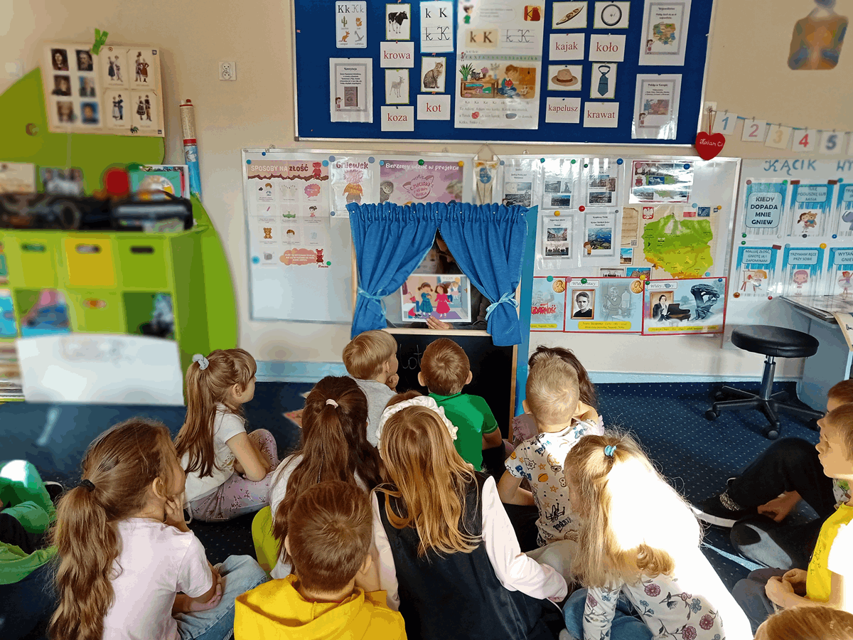 20.11.25 r. "Motylki" uczestniczyły w zajęciach realizujących projekt edukacyjny "Czuciaki z Krainy Emocji". Dzieci wysłuchały bajkę pt. "Gniewek z Wyspy Złości" i wykonały doświadczenie z balonem. Stworzyły bank pomysłów na rozładowanie złości i uczyły się radzenia sobie z gniewem.