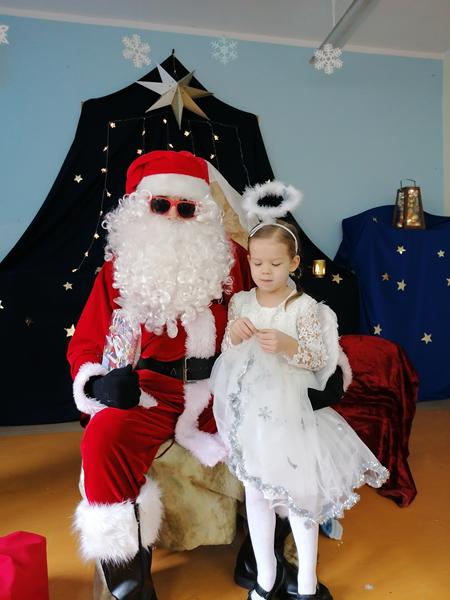 Jasełka w wykonaniu dzieci z grupy "Stokrotek" obejrzał również gość specjalny - Święty Mikołaj, który po uroczystości odwiedził dzieci w ich salach.