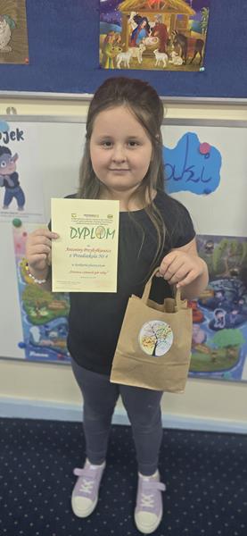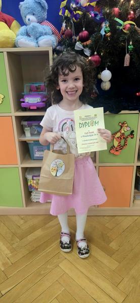 Pod koniec listopada Tosia i Zosia B. z grupy "Motylki" wzięły udział w konkursie plastycznym pt. "Drzewa w czterech porach roku", zorganizowanym przez Przedszkole Nr 3, za który otrzymały dyplomy i nagrody. Serdecznie gratulujemy dziewczynkom osiągniętego sukcesu.