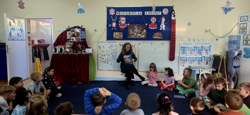 11.12.25 r. Ciocia Ola do naszej grupy przybyła i w spotkaniu czytelniczym uczestniczyła. Z historią kurki, która Krainę Smutku w Radość przemieniła nas zapoznała i o radości z nami rozmawiała.