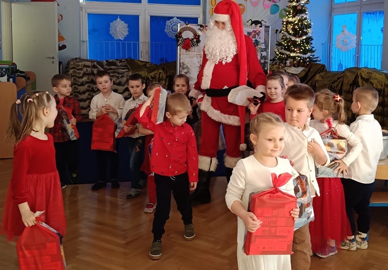 Do każdej sali zawitał Święty Mikołaj z wielkim workiem pełnym prezentów. „Biedronki” recytowały poznane wiersze oraz zaśpiewały piosenkę pt. „To Mikołaj Święty, niesie nam prezenty”. Największą frajdą dla każdego dziecka, była możliwość zrobienia sobie pamiątkowego zdjęcia z Mikołajem.