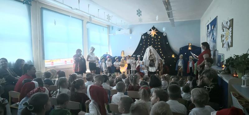 19.12.25 r. Motylki w odświętnych strojach do przedszkola przybyły, w JASEŁKACH w wykonaniu dzieci z grupy "Stokrotki" uczestniczyły, a następnie Świętego Mikołaja w swojej sali gościły.
