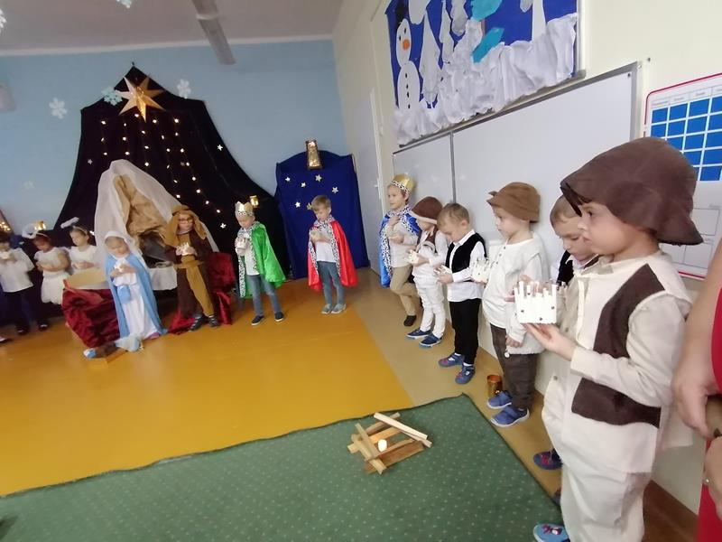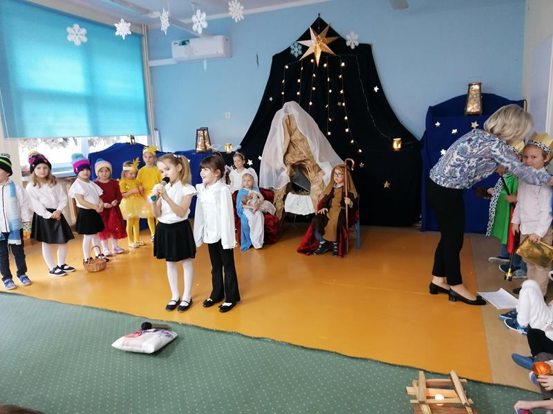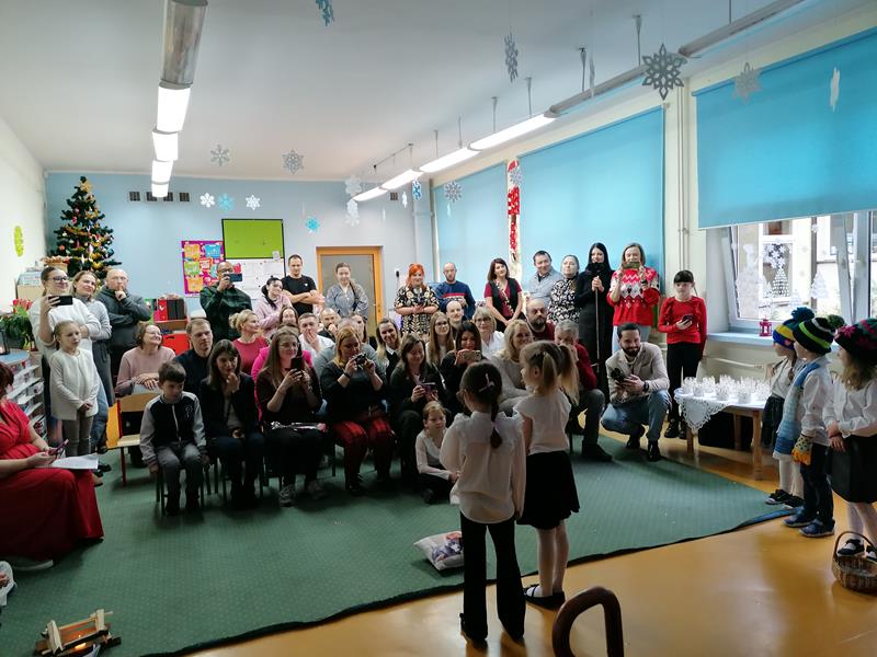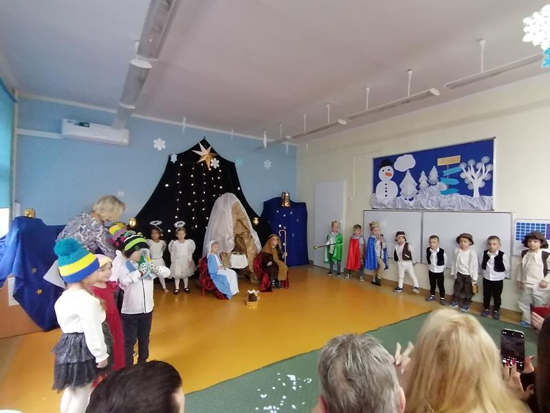 22 grudnia 2025r. "Stokrotki" zaprosiły swoich rodziców do przedszkola. Dzieci zaprezentowały Jasełka, czyli historię Bożego Narodzenia. Było wspólne śpiewanie kolęd, życzenia i drobne upominki dla rodziców. Dzieci za swój występ otrzymały gromkie brawa.