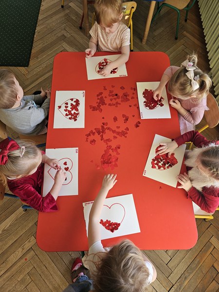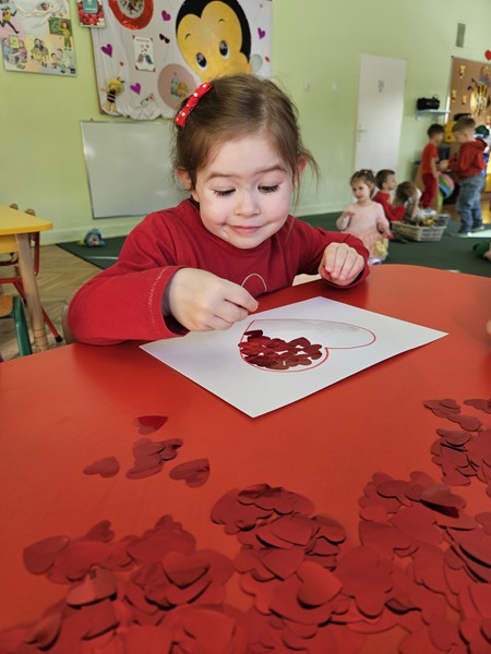 Dzieci ubrane na czerwono i różowo, brały udział w tematycznych zabawach, tańcach oraz tworzyły własnoręczne serca walentynkowe. Był to dzień pełen uśmiechów, uścisków i nauki o tym, jak okazywać sympatię innym.