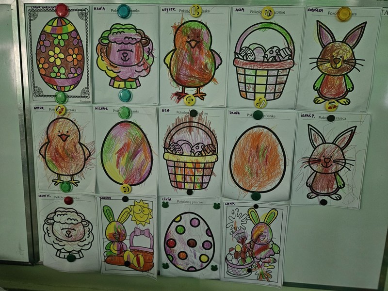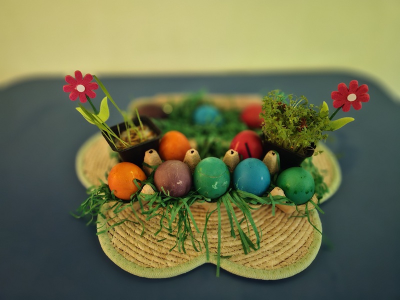 Ozdoby wykonane przez dzieci ozdobiły naszą salę oraz domowe stoły wielkanocne.