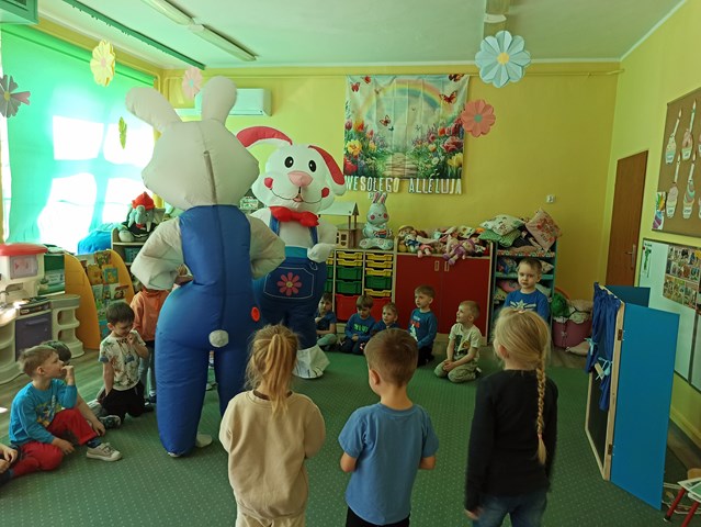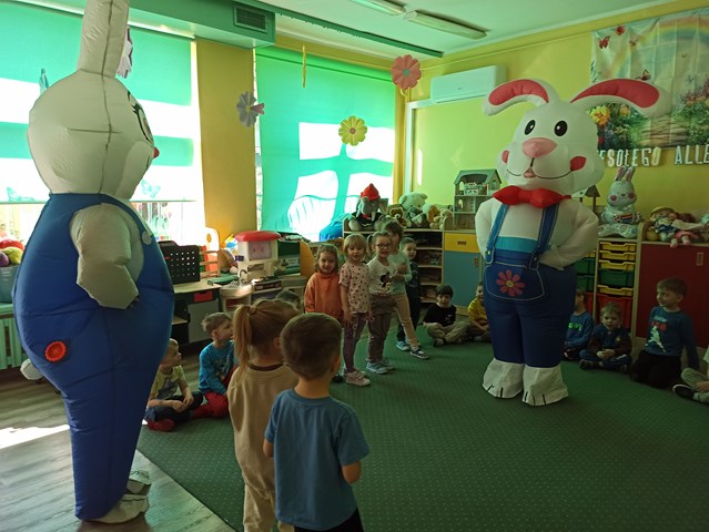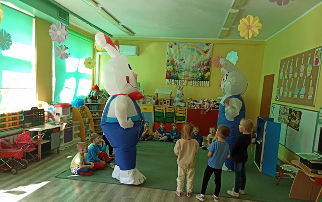 01.04.2026 r. do "Czwóreczki" zawitali wyjątkowi goście - "Wielkanocne Zające". Dzieci z grupy "Bratki" przywitały Zajączki piosenką, a w nagrodę otrzymały upominki, które sprawiły dzieciom wiele radości. To było pełne ciepła i magii spotkanie, które na długo pozostanie w pamięci naszych przedszkolaków. Dziękujemy!!!